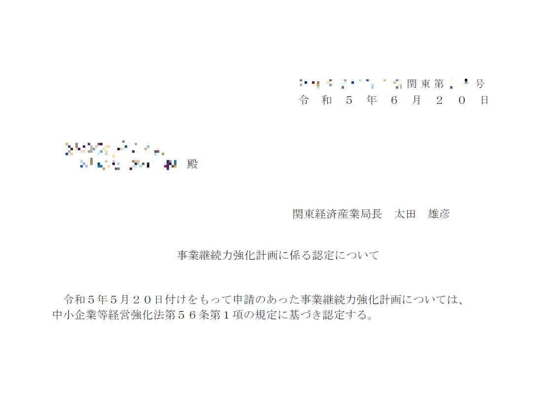 このたび、関東経済産業局から事業継続力強化計画の認定を受けました。