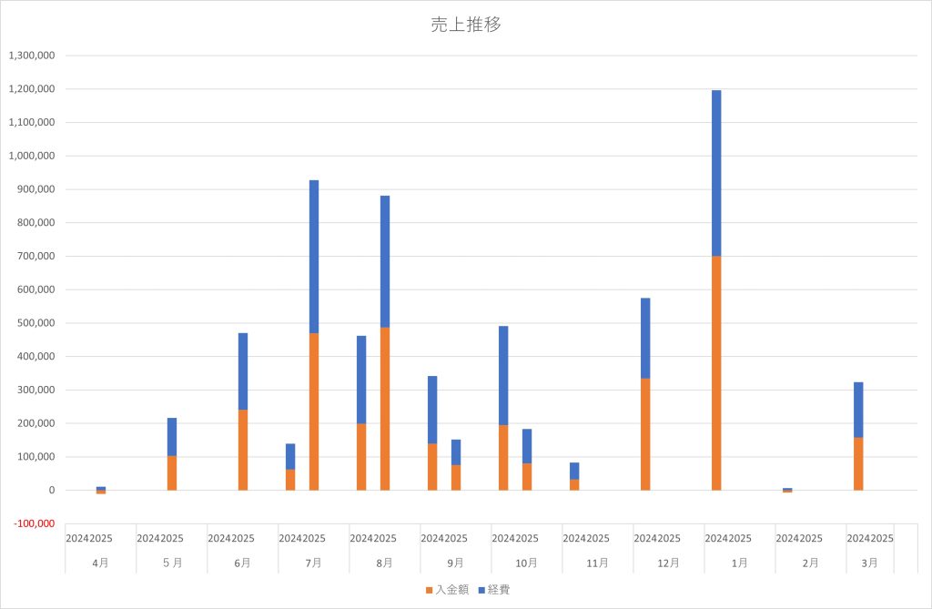 客数が減っている以上、売上も下がって当然。それでも4月から稼働していること、そして繁忙期の貯金があるので10月までの時点では当然去年よりプラスで推移しています。