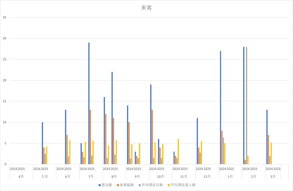 問題は今後。そもそも9月~12月は捨てています。あとは1月~3月でどれだけ積み上げられるか?興味はそこだけです。ただ、去年の2月は特殊な例で1組が1か月丸々利用されました(上記グラフは入金の対民で計上しているので1月に見えます)。1月2月で55泊の利用とほぼ究極の予約数だったので、それを今シーズンでさらに上回ることは難しいと思います。